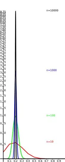Når flere mønter kastes samtidig, er der endnu flere kombinationsmuligheder, som giver 50 % krone, mens der stadig kun er én kombination, hvor alle mønter lander på plat. 0.5 og nærliggende resultater derfor mere og mere sandsynlige, mens mere ekstreme resultater bliver mindre og mindre sandsynlige. Jo større et system er, jo mindre betydning vil statistiske fluktuationer altså have.