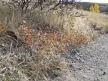 I den sydlige del af Minnesota, USA, findes rester af den oprindelige prærie. Her vokser arten sammen med bl.a. amerikansk blomme, Amorpha canescens (en art af særkrone), amerikansk hassel, Aster laevis (en art af asters), bleg purpursolhat, canadisk gyldenris, Cornus racemosa (en art af kornel), kalkunfod, kompasplante, Liatris aspera (en art af pragtskær), liden præriegræs, lyngasters, præriehirse, prærievadegræs, Sorghastrum nutans (en græsart), Stipa spartea (en art af fjergræs), sølvbynke, trenervet snerre og yuccabladet mandstro[1]