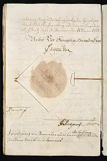 Stavnsbåndet blev i 1733 indført i Danmark under Christian 6. enevældige regering efter ønske fra godsejere og militær.[2] Det bandt mænd mellem 14 og 36 år til at blive boende på det gods eller herregård, hvor de var født. Bopælspligten havde eksisteret siden begyndelsen af 1700 -tallet, men da der var mulighed for at købe fripas, gjorde det i praksis næppe særligt indtryk på de bedrestillede, det vil sige bønderne og deres sønner.[3] Det blev ophævet i 1788 med forordningen om afskaffelsen af stavnsbåndet, der skulle afvikles frem til 1800. Udskrivelsen af soldater overgik herefter til et statsligt sessionsvæsen.