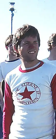 ![]() Steen Tinning på Inspektionsskibet "Hvidbjørnen" i 1984, umiddelbart inden polardåben ombord. | |