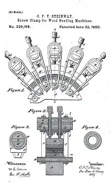 Steinway-flyglers kant består af lag af ahorn og mahogni,[126] der er presset og bøjet i form i én proces.[127][128] - Patent nr. 2.051.633 (18. august 1936):[124][129]
