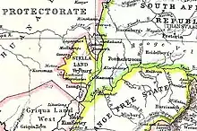 Storbritannien sendte i 1885 en styrke under Charles Warren i 1885 som afskaffede republikken den 30. september og førte territoriet tilbage til Britisk Bechuanaland.