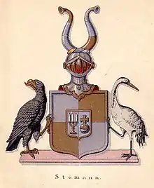 Embedsmandsslægten Stemann føres tilbage til købmand i Hamborg Justus Stemann (1539-1603), der stammede fra Oldendorf i Westfalen; hans søn, magister Johan Stemann (1602-1676), der 1625-30 var præst ved den tyske Kirke i København, døde som archidiakon og præst ved Hamborg Sankt Nicolai Kirke; han var fader til generalsuperintendent i Holsten, konsistorialråd Just Valentin Stemann (1629-1689), hvis sønner var læge i Itzehoe, dr. med. Just Daniel Stemann (1669-1717) og sekretær i Danske Kancelli Johan Valentin Stemann (født 1662); sidstnævnte var fader til branddirektør i Segeberg, etatsråd Poul Christian Stemann (1699-1770) og til sognepræst i Magleby Johann Friedrich Stemann (1696-1742), hvis søn, amtsforvalter i Husum Henrik Hirnklov Stemann (1733-1800) var farfader til rets- og adelshistoriker, gehejmekonferensråd Christian Ludvig Ernst Stemann (1802-1876), der 19. januar 1848 optoges i dansk adelstand; hans søn, stiftamtmand, kammerherre Carl Gustav Wilhelm Heinrich Stemann (1845-1929) var gift med forfatterinden Helga Ingeborg Amalie Stemann, f. Meldahl (1861-1952) og fader til generalmajor Johan Daniel (von) Stemann (1887-1982) og til sprogpædagogen Ingeborg Helga Frederikke Amalie Stemann (1889-1973) samt til amtmand over Bornholms Amt Poul Christian (von) Stemann (1891-1966).