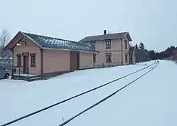 Stationsbygningen blev opført til åbningen i 1877 efter tegninger af Georg Andreas Bull. Den blev solgt fra i 2004.