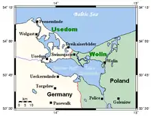 I 1880 åbnedes kanalen Kaiserfahrt på Usedom, og en sejlrende med dybde på 10 meter knyttede lagunen med Østersøen, så større skibe kunne komme ind til havnen i Stettin.