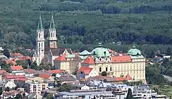 Det store bygningsværk, hvis hovedpart er bygget mellem 1730 og1834, er bygget på et bjerg, som rejser sig direkte over Donau. Fundamenterne kan sammen med et slotstårn og et gotisk kapel dateres tilbage til det 12. århundrede. Et kapel fra 1318 med Leopold 3.'s grav er også bevaret. Fra 1634 fik habsburgere ombygget klosteret i en barok stil, som blev forestået af arkitekterne Jakob Prandtauer, Joseph Emanuel Fischer von Erlach og Donato Felice d'Allio.