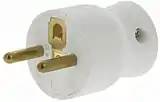 3-benet stik og jordforbundet udtag, 230 V. Dette udtag har ikke kontakt på og er til udendørs brug (der er vandtæt klap på, der beskytter udtaget når der ikke er stik i).