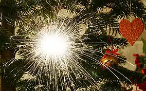 En udbredt skik er, at børn og barnlige sjæle tager stjernekasterne fra juletræet og holder dem i hånden, når de antændes.