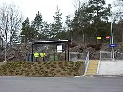 I forhold til flere andre stationer på Arendalsbanen, der stammer fra banens åbning i 1908 eller de efterfølgende år, så er Stoa en forholdsvis moderne station, hvor der er gjort brug af beton og stål i stedet for træ og grus. Den er dog ret simpel, idet den stort set kun består af et spor og en perron med et læskur af glas. Stationen ligger i øvrigt i et område med flere indkøbscentre og industrivirksomheder.
