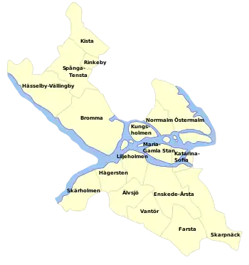 Nuværende bydelsområder i Stockholm