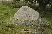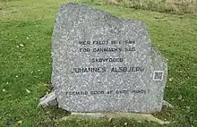 Der blev rejst en mindesten for Johannes Alsbjerg 70 meter syd for hans skovfogedbolig. Men det var lidt afsides, så den blev i 2015 flyttet til området ved egnens populære badested Birkesø, hvor der i forvejen var en mindesten for modtagegruppen.[13]
