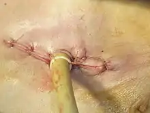 - Urostomi: Man tager et stykke af tyndtarmen, fører urinlederne (stykket mellem nyrerne og urinblæren) og syer dem fast til tarmstykket. Den anden ende af tarmstykket føres ud gennem bugvæggen som en stomi.