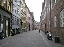 Tre af Københavns ældste bygninger til beboelse kan findes i gaden. Regensen blev grundlagt af Christian 4., men det er dog kun de to nederste etager langs østsiden af gaden, der er fra den oprindelige bygning fra 1623. Delen på vestsiden af gaden gik tabt under branden i 1728, men blev genopbygget i 1749. Den tredje etage blev tilføjet i 1777.[4] Elers Kollegium i nr. 9 blev bygget i 1705 efter tegninger af den kongelige bygmester Johan Conrad Ernst. Interiøret blev ødelagt under branden i 1728, men blev genskabt af Johan Cornelius Krieger i 1730.[5] Borchs Kollegium i nr. 12 blev ødelagt af branden i 1728 og igen under Københavns bombardement i 1807. Den nuværende bygning blev færdiggjort i 1825 efter tegninger af Peder Malling, der også stod for universitetets hovedbygning på Frue Plads.[6]