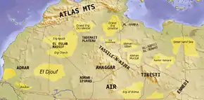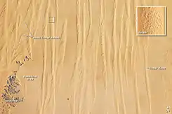 ![]() Sandklitterne i det store sandhav nær Siwa i Egypten | |