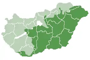 I Ungarn er Alföld delt mellem to regioner: Észak-Alföld (nord) og Dél-Alföld (syd).