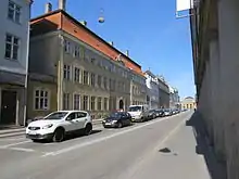 På den modsatte side af gaden kan blandt andet nævnes nr. 6, der er fra 1851 og blev fredet i 1918. Nr. 8 var oprindelig to separate bygninger fra et tidspunkt før 1734, der blev slået sammen i 1748.[4] Holsteins Palæ i nr. 10 blev oprindelig bygget i 1687, men dets nuværende udseende skyldes primært en udvidelse foretaget af Jacob Fortling i 1756. Det husede Statens Naturhistoriske Museum mellem 1827 og 1871. Det Harboeske Enkefruekloster i nr. 14 blev ombygget af Elias David Häusser i 1741, men dets nuværende udseende skyldes udvidelser og ændringer foretaget af Lauritz de Thurah mellem 1754 og 1760.[5] Hjørnebygningen i nr. 16 blev bygget til den kongelige konditor Jens Raae i 1791. Kvistvinduet mod Stormgade blev tilføjet i 1811, og der er sket flere ændringer siden. Bygningen blev fredet i 1945.