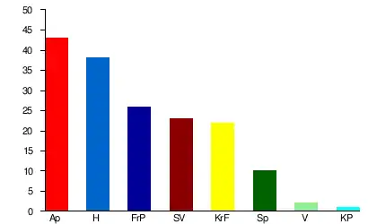 | Fremskrittspartiet | 369 236 | 14,6 | 26 |