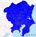 De øvrige byer i præfekturerne Chiba, Kanagawa og Saitama er: