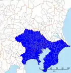 | Kantō-regionen | En bred regional definition med mange landdistrikter. | 42.607.376 | 32.423,9 | 1.314,1 | Japans Statistik | 2010 Opgørelse[7] | ![]()  |