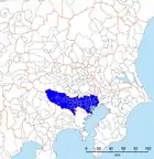 Vesttokyo, kendt som (Tama-chiiki 多摩地域) består af en række kommuner og forstadsbyer: