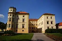 Strážnice Slot blev genopbygget til sin nuværende neorænessanceform med neoklassiske elementer i midten af det 19. århundrede. I dag huser slottet Statens Institut for Folkekultur. Der er en permanent udstilling af "Tjekkiets folkeinstrumenter" og et historisk bibliotek med mere end 13.000 bøger. Slottet er omgivet af en stor engelsk park med den længste platanallé i Centraleuropa grundlagt i første halvdel af det 19. århundrede. Der er Amfiteatre, en sommerbiograf, søer og en dendrologisk sti med informationstavler i parken.[5]