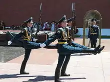 Vagtskifte i strækmarch ved den ukendte soldats grav ved Kremls mur.