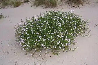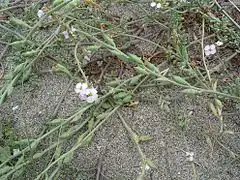 Strandsennep (Cakile maritima) er en 15-30 cm høj urt, der vokser på sandstrande med tang.