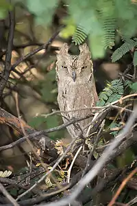 Stribet dværghornugle (Otus brucei) har en længde på 20-21 centimeter og et vingefang på 54-57 centimeter.