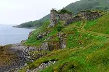 Ruinerne af Strome Castle ved bredden af Loch Carron.
