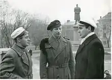 Dansk (venstre), norsk (midten) og svensk (højre) student, til demonstration i Uppsala i 1943