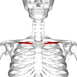 | Insertion | subclavian rille på kravebenet (inferiore overflade af midterste tredjedel af kravebenet) |