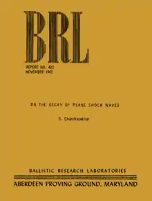 Under 2. verdenskrig arbejdede Chandrasekhar med ballistiske problemer ved "Ballistic Research Laboratories" i Aberdeen Proving Ground i Maryland og udgav her to rapporter i 1943 med titlerne On the decay of plane shock waves og The normal reflection of a blast wave.[5]