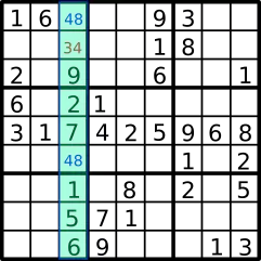 Optræder den samme kombination af to mulige tal i en række, kolonne eller blok, kan tallene fjernes i de øvrige celler i rækken, kolonnen eller blokken. På tegningen til venstre optræder den situation i den fremhævede kolonne. Ved betragtning af de mulige tal i de enkelte celler, fremkommer der i to af cellerne kombinationen 48. I den sidste celle er den mulige kombination 34. Tallet 4 kan fjernes fra denne celle, idet pardannelsen 48 nødvendigvis vil kræve at tallet 4 optræder i en af de to celler parret optræder i. En tilsvarende metode kan også anvendes hvis tre celler indeholder den samme kombination af tre tal, eller i sjældne tilfælde, hvis fire celler indeholder den samme kombination af fire tal.