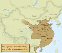 Sui-dynastiet (隋朝) genoprettede kejserdømmet Kina efter en meget lang periode med indre stridigheder. Dynastiet regerede riget fra 581 til 618 og blev grundlagt af Kejser Wen, født Yang Jian i år 541. Kejser Wen regerede fra år 581 til år 604.