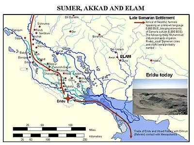 Den sumeriske kultur kan spores til to centre: Eridu mod syd og Nippur mod nord. Disse byer er modpoler i den sumeriske religion.