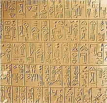 I tidlig sumerisk periode (det vil sige Uruk), antyder primitive piktogrammer[11], at