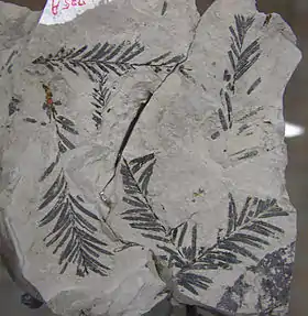 Et forstenet aftryk af den uddøde art, Taxodium dubium, fundet i Belgien.