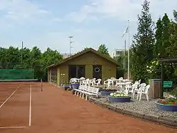 ![]() Sundby Tennisklubs klubhus i den nordlige ende af tennisbanerne i Sundby Idrætspark. | |