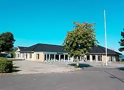 - Byen har 2 dagligvareforretninger, 2 pizzeriaer, lægehus og filial af Handelsbanken.