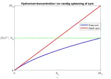 For en syre med en enkelt proton er hydronium-koncentrationen altså approksimativt lig med den oprindelige syrekoncentration :[3]