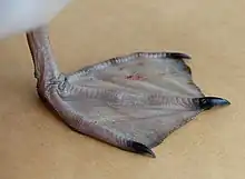 - Ægte svømmefod har blød svømmehud mellem de tre fortæer enten helt ud til kløerne (ænder, lommer, måger, alkefugle) eller mere eller mindre indbuet, hvor den ikke rækker ud til tæerne (terner og andre). Bagtåen er enten med svømmelap (dykænder), uden svømmelap (svømmeænder, måger og andre) eller helt manglende (alkefugle).