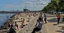 Strandparken ved Svanemøllebugten med Svanemølleværket i baggrunden