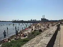 Svanemøllestranden på en typisk solskinsdag i København.
