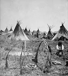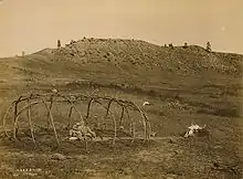 På lokaliteter uden mulighed for at finde bøjelige grene erstattede indianerne dem med korte stænger stillet op som i et kegleformet tipifundament.[11]