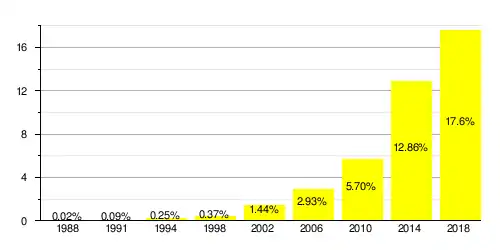 | 1994 | 13.954 | 0.3 | 0 / 349 |