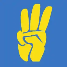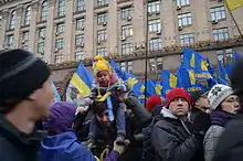 Svobodas blå/gule faner med tre udstrakte fingre, et symbol på den anti-sovjetisk frihedskamp under sovjettiden, blev set i stort tal ved Euromajdandemonstrationerne.