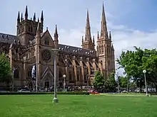 I 1814 fik guvernøren en straffefange ved navn Francis Greenway til at tegne Macquarie Lighthouse.[76] Fyrtårnet og dets klassiske stil introducerede en ny forfinet arkitektur. MacQuarie benådede i 1818 Greenway for hans indsats.[77] Greenway fortsatte med at tegne Hyde Park Barracks i 1819 og St James's Kirke i georgiansk stil i 1824.[78][79] Gotisk-inspireret arkitektur blev mere populært fra 1830'erne. John Verge's Elizabeth Bay House og St Philip's Church fra 1856 er bygget i nygotisk stil sammen med Edward Blores Government House fra 1845.[80][81] Kirribilli House, færdigt i 1858, og St. Andrews Cathedral er sjældne eksempler på victoriansk-gotisk arkitektur.[80][82]