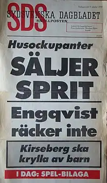 Spiseseddel for Sydsvenska Dagbladet fra 1990