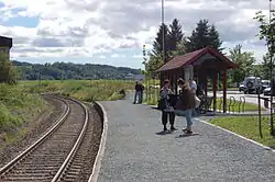 Stationen åbnede som trinbræt 20. december 1995. Betjeningen med persontog ophørte 12. december 2010.[1] Det skyldtes et påbud fra Statens jernbanetilsyn, der var begrundet i sikkerhedshensyn.[2] Ifølge sikkerhedsforskriften[3] var perronen for kort og kunne kun betjenes af tog, der var kortere end dem, der kørte på strækningen.[4]