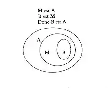 Syllogisme som mængdelære: M er en del af A. B er en del af M. Derfor er B en del af A
